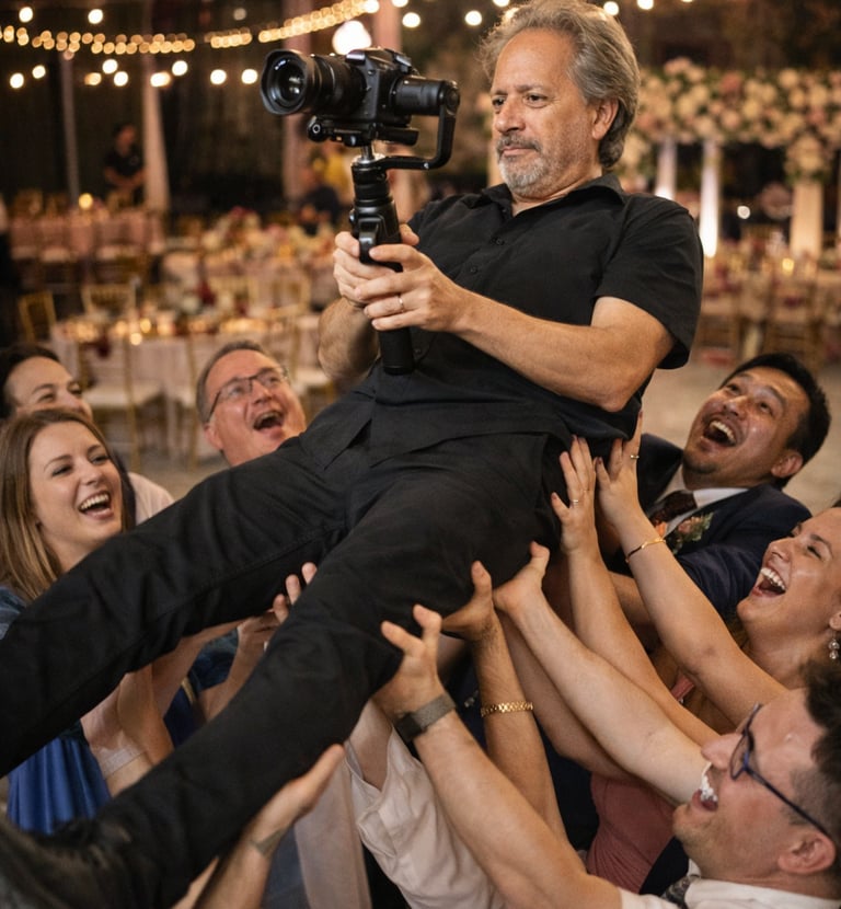 Nos caracteriza una forma de grabar que muchos invitados apenas notan, y cuando lo hacen, suele ser con una sonrisa: trabajamos con discreción real, no invasiva, porque entendemos que una boda no es un rodaje sino una celebración viva, por eso no actuamos como paparazzi ni interrumpimos momentos, sino que observamos, anticipamos y capturamos desde ángulos inesperados, a veces desde la distancia y otras muy cerca, pero siempre con naturalidad y respeto por el ambiente; sabemos movernos entre mesas, risas y brindis sin romper la magia, encontrando esos instantes espontáneos que nadie posa y que son los que realmente cuentan la historia, y cuando la situación lo pide, también sabemos integrarnos en la fiesta como un invitado más, adaptando nuestra presencia al ritmo de la celebración para que la cámara no sea un obstáculo sino parte invisible del recuerdo, logrando así un equilibrio preciso entre invisibilidad profesional y participación cómplice que nos permite registrar emociones auténticas, reacciones inesperadas y momentos irrepetibles sin que nadie sienta que está siendo “grabado”, sino simplemente, viviendo el momento...